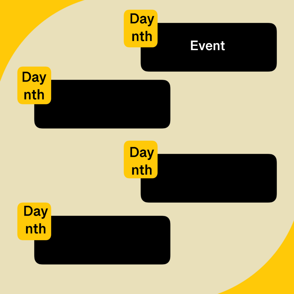 Events announcements that are clear and concise, delivering information as well as channeling the vibe of the event itself.
