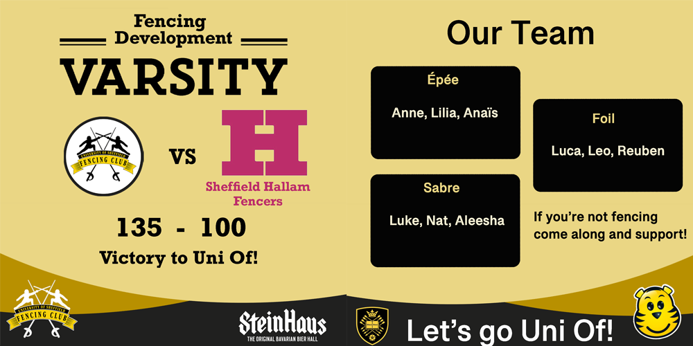 I ran the University of Sheffield Fencing Club Instagram as 2024/25 Publicity Officer. Other posts have been made in the capacity of other committee positions in other university societies and are amongst my examples below